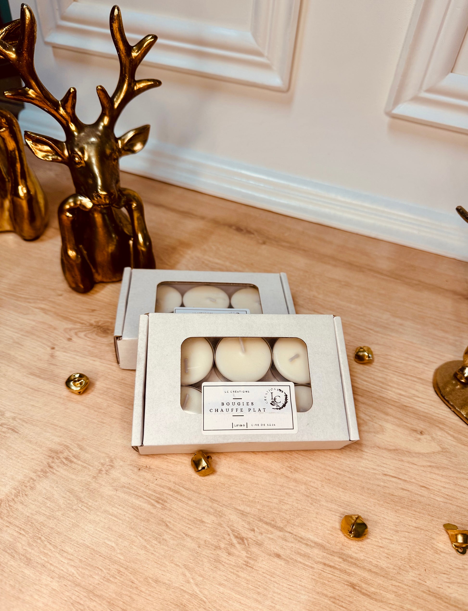 Lot de 6 bougies chauffe plat artisanales à la cire de soja.